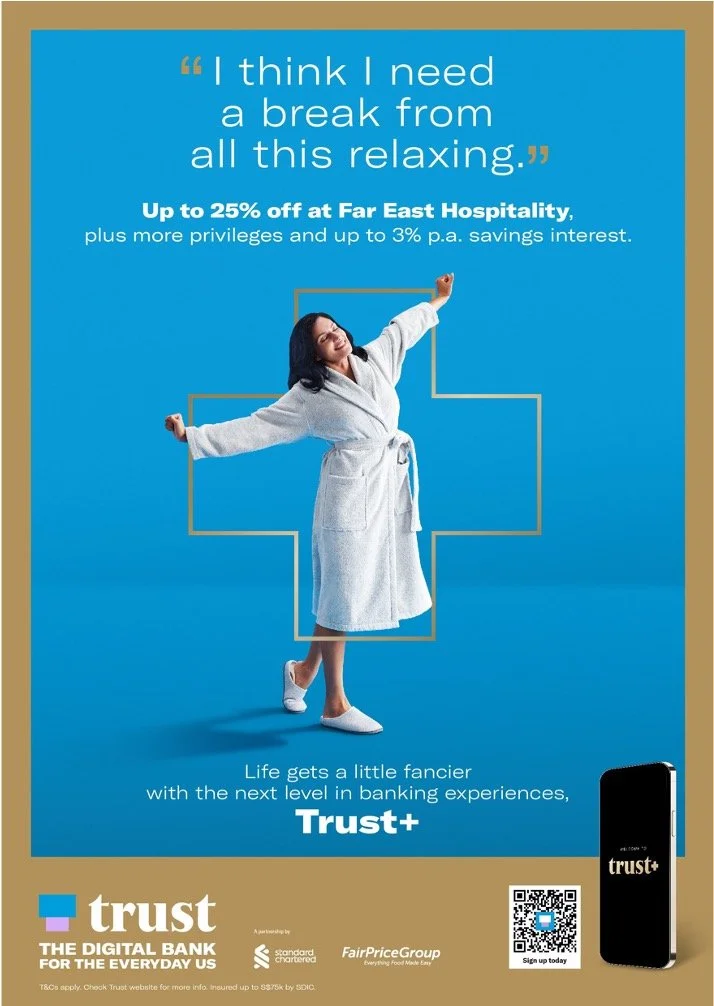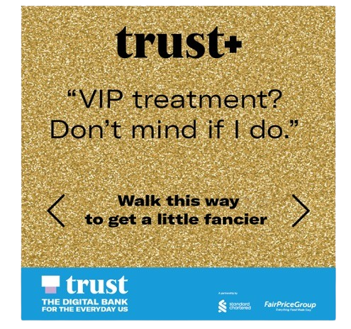To launch Trust’s new premium product - Trust+, we launched an integrated campaign across Singapore. With witty copy and relatably subtle body language, we captured an attitude shared specifically by Trust+’s mid-range affluent target audience.